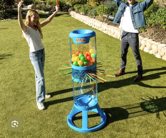 Players take turns carefully pulling out sticks while trying to keep the balls from dropping. The suspense builds with every move, making it a great crowd-pleaser and a fun way to get guests interacting.