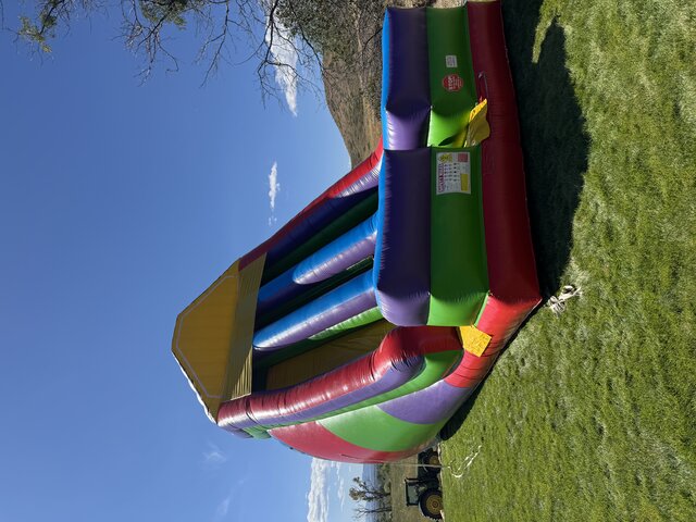 Rental includes: Giant Rainbow Double Lane Slide, professional setup and takedown.